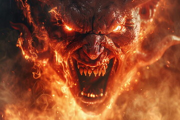 Ominous demon under full moon creating smoky hell