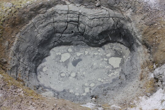 boiling mud pot, in the volcanic area of bumpass hell in lassen national park, in northern california