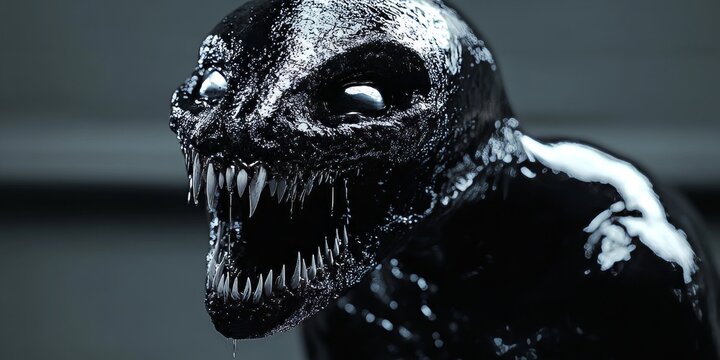 Sinister Entity Glaring into the Abyss, Featuring Dark Texture, Sharp Teeth, and a Gloomy Background