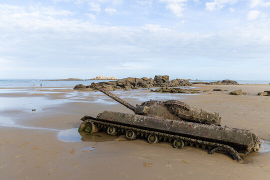 Abandoned army tank M18 Hellcat on Oucuo Beach in Kinmen Island