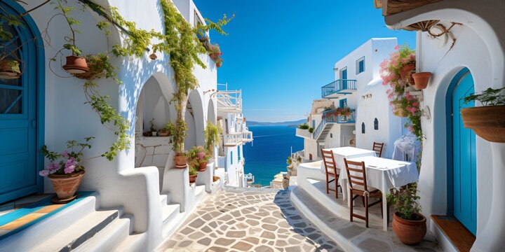 Santorini, Greece. Iconic White Architecture and Azure Aegean Sea. Summer Travel Destination