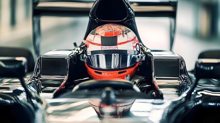 Futuristic humanoid robot with chrome panels and orange visor in lab