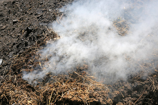 Smoke from charcoal in a traditional manner forest.