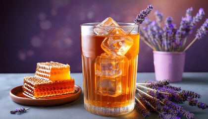 Lavender Honey Iced Tea Served In Crystal Glasses With Ice Cubes Honeycomb And Lavender Sprigs Creating A Refreshing And Aromatic Beverage Experience