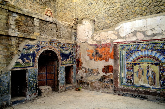 Ruins of Herculaneum, ancient roman town destroyed by Vesuvius eruption