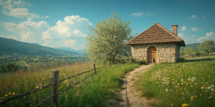 Izborsk, Russia - August 6, 2025. Ancient Stone Fortress Overlooking Scenic Countryside