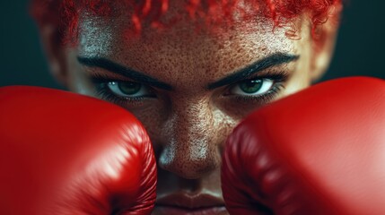 A boxer with red gloves is seen standing resolutely against a dark and dramatic backdrop, highlighting the intensity and determination often seen in the sport of boxing.