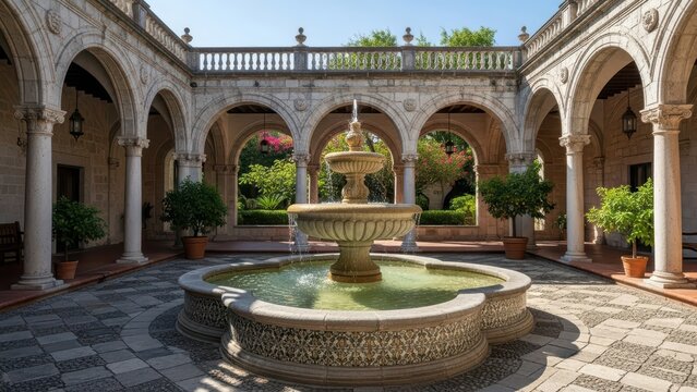 Medieval gothic cloister with arches and columns