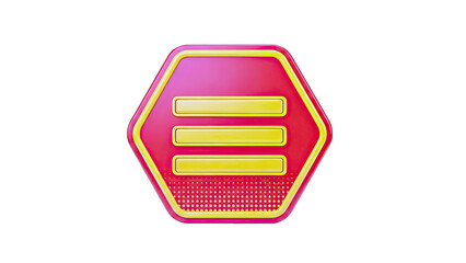Red and yellow hexagon button with three yellow bars