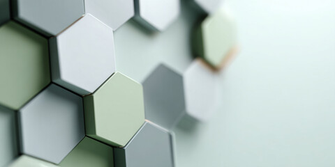 Intricate white hexagonal tiles with geometric patterns, creating a modern atmosphere with natural lighting and shallow depth of field