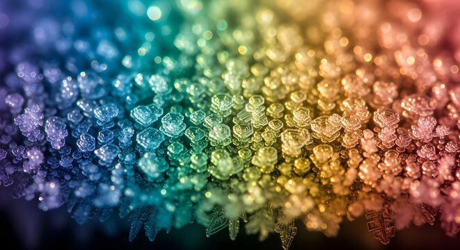 Vibrant Rainbow Frost Crystals Macro Texture Bokeh Background
