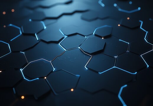Intricate black hexagonal honeycomb pattern featuring illuminated edges, creating a dynamic and modern visual effect suitable for various applications