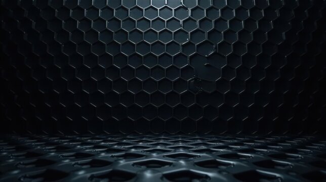 Dark Hexagonal Grid Pattern Background Design with Floor