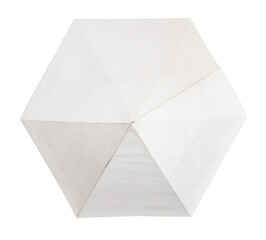 top view of hand-crafted from paper hexagonal pyramid three-dimensional geometric shape isolated on white background