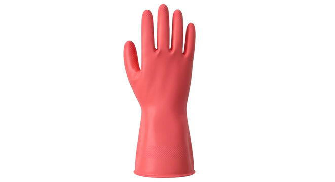 Isolated pink rubber glove for washing dishes and cleaning on a solid background color