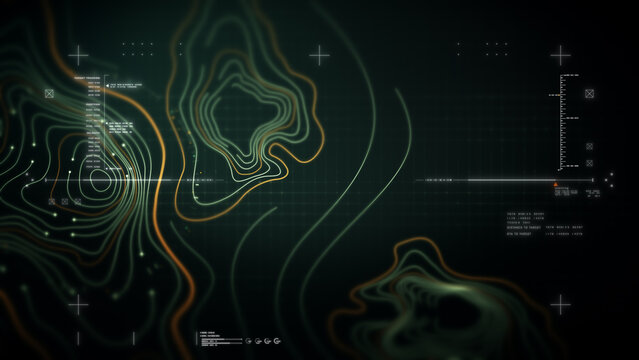 Futuristic Holographic Terrain environment, geomorphology, topography loop motion graphic user interface head up display screen