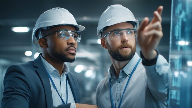 Business colleagues discussing in high-tech office environment