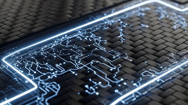 Futuristic tech graphic with neon circuitry overlay
