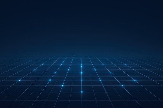 glowing digital grid forms dynamic wave pattern, creating futuristic and hi tech background with sparkling data points