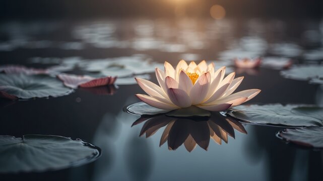 Translucent lotus projection on water, ideal for calm tech and wellness spaces.