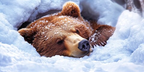 Peaceful bear sleeping isolated, tranquil dream lying winter, cozy hibernation wildlife cave animal, adorable sweet nature, woodland gentle slumbering