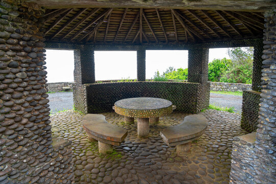 Picnic area located in a roundabout at a high point in the bay of São Lourenço, Azorean island of Santa Maria - Portugal