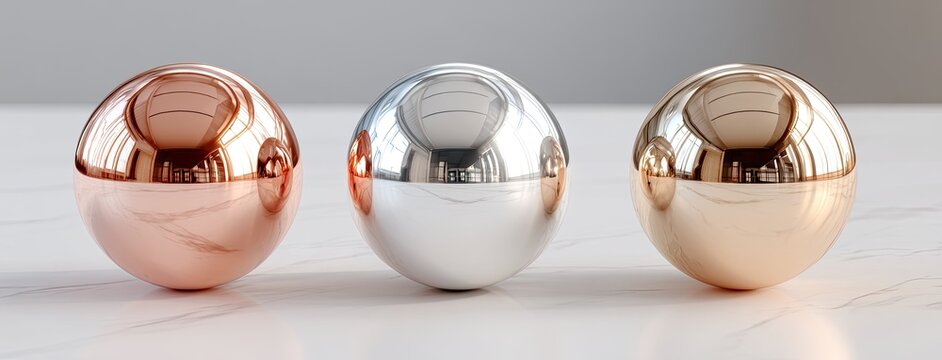 Polished silver spheres on a monochrome background display stunning reflections and intricate details in high resolution