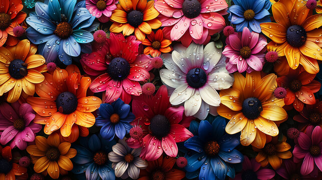 oil painting daisy pattern, colorful flowers texture. Wall Art Poster Print Design for Home Decor, Decoration Artwork, High Resolution Wallpaper and Background for Computer, Smartphone, Cellphone