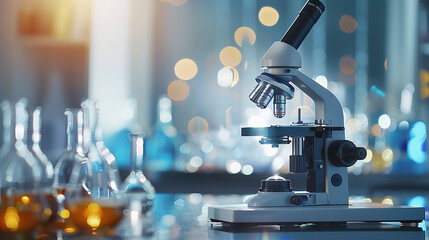 Microscope lens adjusting to nanometer scale precision laboratory science technology research closeup metal modern equipment