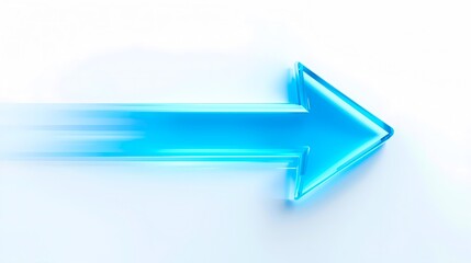 3D blue transparent arrow with soft neon bright motion effect on a clear white background