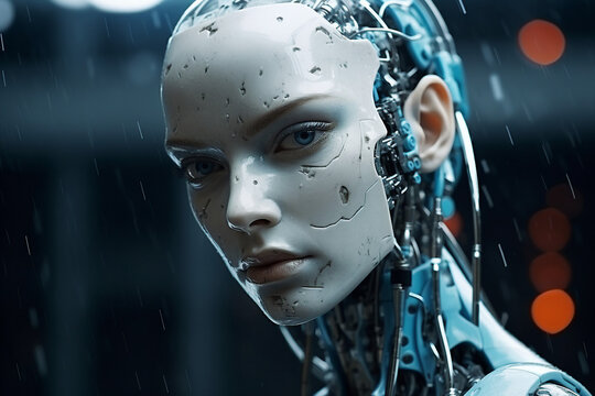 A fictitious image of woman in cyberpunk attire futuristic high tech generative AI