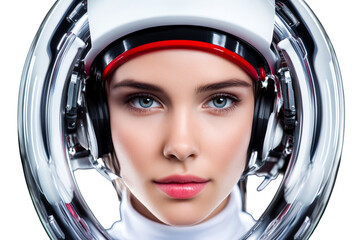 Futuristic Red, White, and Black Portrait of Woman in Extravagant Minimalist Attire. Generative ai. High quality
