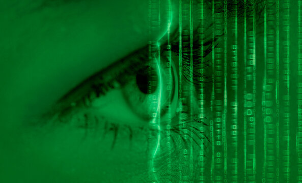 privacy  concept  with eye tech retina scan and binary code