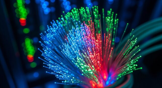 Colorful Fiber Optic Cables Lit Up in a Data Center