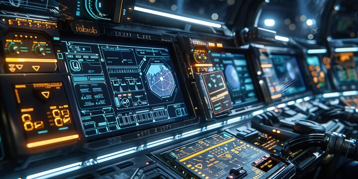 modern digital display in high tech environment, showcasing data visualization and analytics. bright, spacious interior enhances futuristic feel