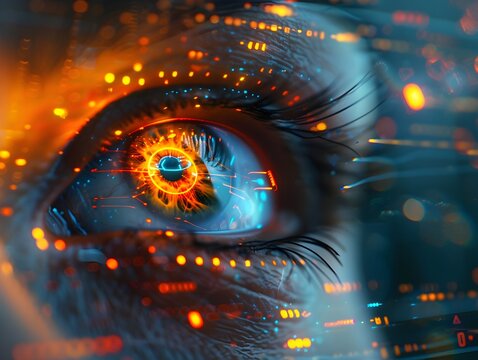 Futuristic Eye with Augmented Reality Data Overlay and Holographic Elements High Tech Vision Concept