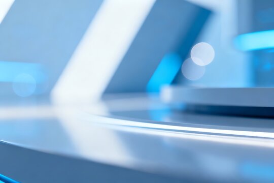 Futuristic holographic sphere glowing with blue light projects digital data in high tech laboratory, evoking innovation and advanced technology concepts