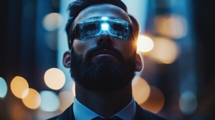 Futuristic Technology Interface in Entrepreneur Eyeglasses.