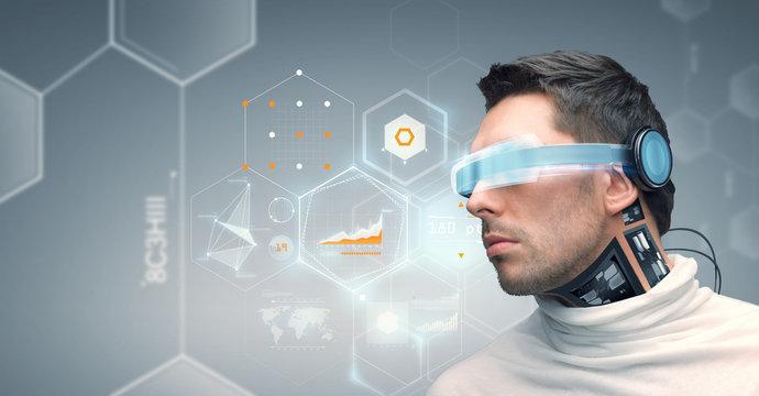 man with futuristic glasses and sensors