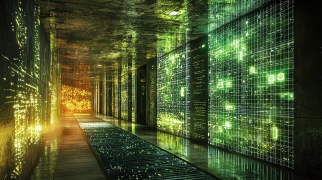 Futuristic digital interface in server room ecosystem