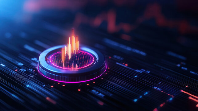 futuristic digital interface with glowing data visualization elements and dynamic infographics, showcasing data driven decisions in high tech environment