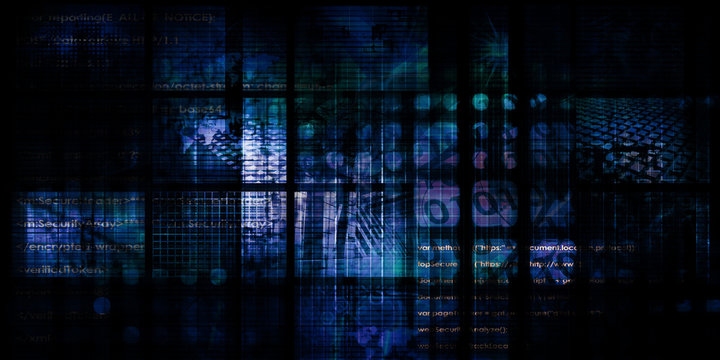 High quality image of futuristic digital data stream emanating from a circular platform with intricate geometric patterns and glowing blue light in a dark environment