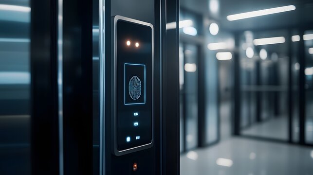 High-Tech Security Access Control in Modern Elevator of Government Building Interior