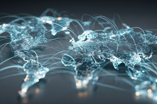 Conceptual map showing interconnected global network, highlighted with shimmering light trails