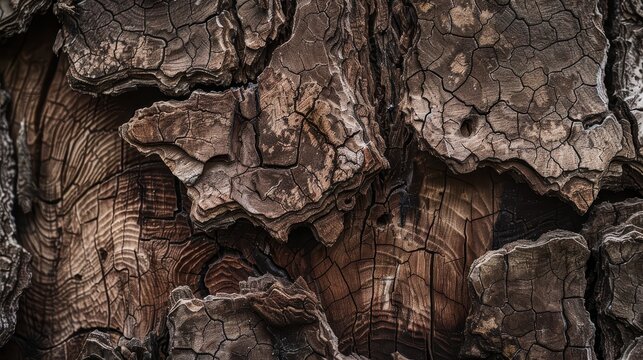 Natural beauty of aged tree with cracks and annual rings highlighted in soft lighting.