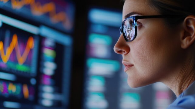 Close-up of a wind turbine with data analytics display in the background, highlighting alternative energy solutions and performance metrics.