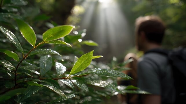 Hiking Adventure  Using Compass and Map in Lush Rainforest