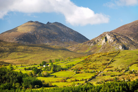 The Mourne Mountains, County Down, Northern Ireland. South over the Trassey Valley, Spellack and Hares Gap to Slieve Bearnagh