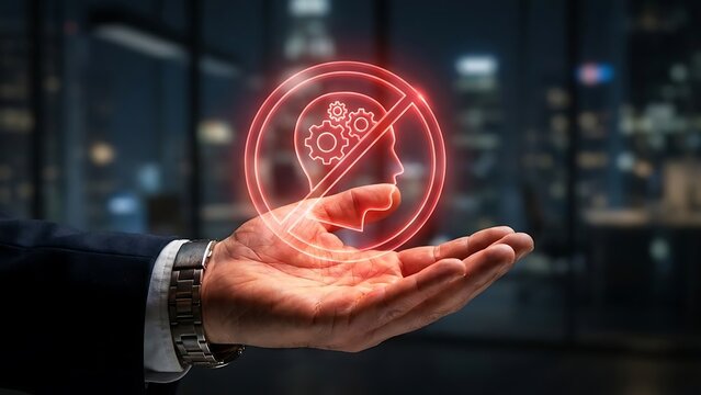 Businessman holding digital prohibition sign.