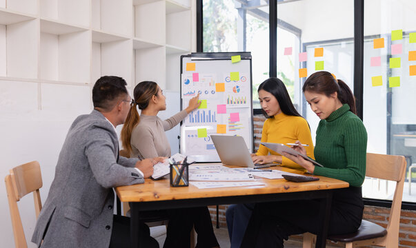 Group of business people working together with dashboard analysis and data management in conference room, Corporate business and dashboard to presentation concept.